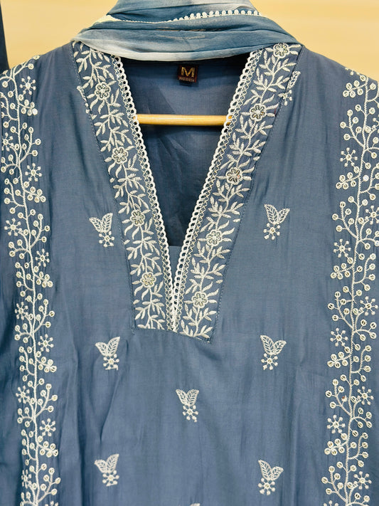 Dark Blue Embroidered Real Chinon Readymade Pakistani Salwar Suit