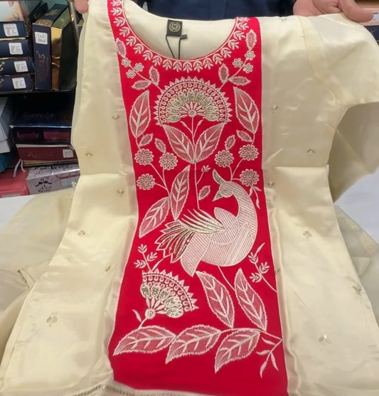 Cream Mal Cotton printed fabric Unstitched Salwar Suit