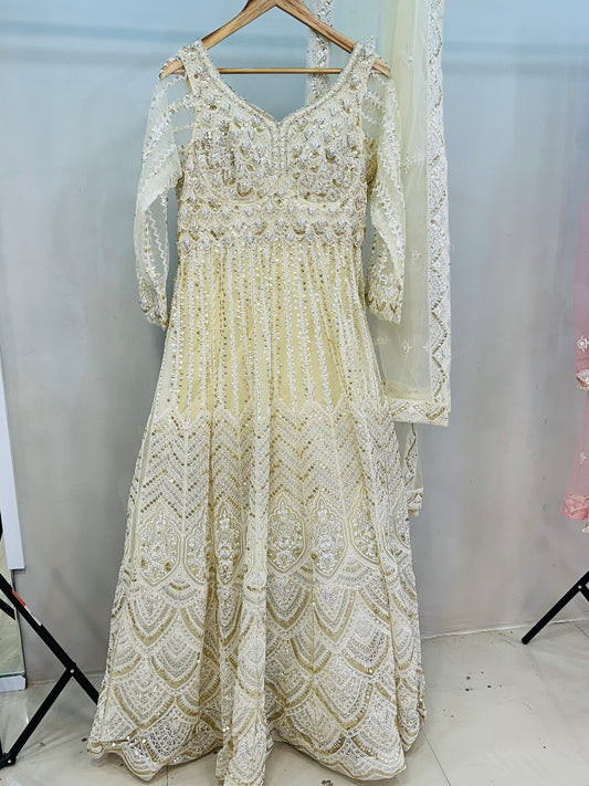 Mustard Yellow Emboidery Heavy Chinon Readymade Sharara Set