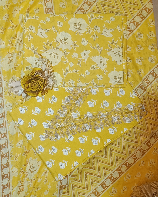 Golden Yellow Mal Cotton printed fabric Unstitched Salwar Suit