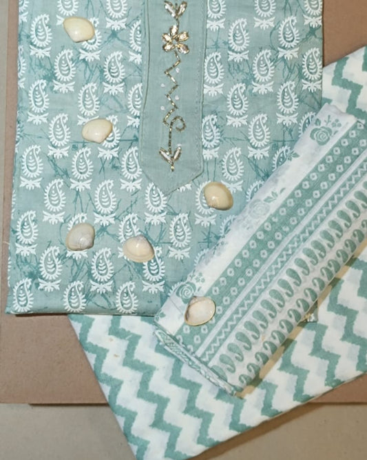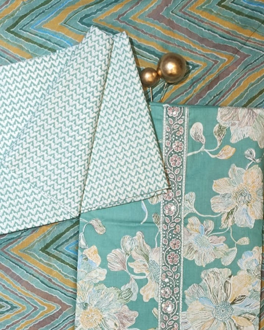 Sea Green Mal Cotton printed fabric Unstitched Salwar Suit