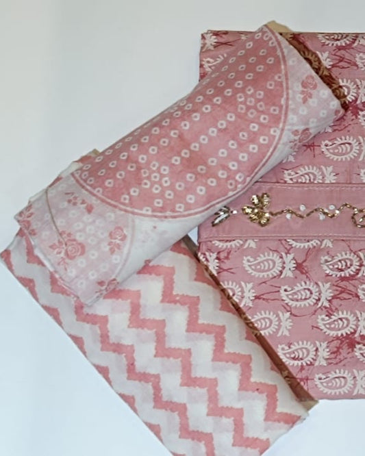 Pink Mal Cotton printed fabric Unstitched Salwar Suit