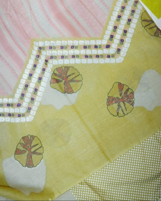 Yellow And Light Pink Mal Cotton printed fabric Unstitched Salwar Suit