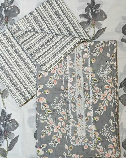 Grey and White Mal Cotton printed fabric Unstitched Salwar Suit