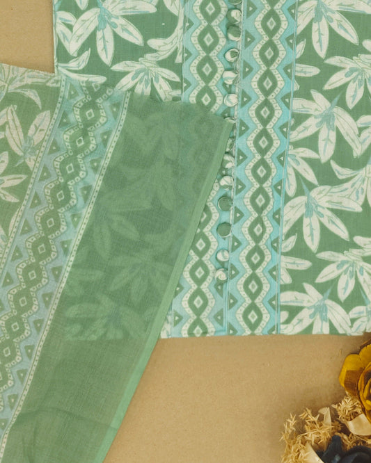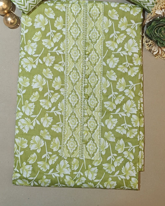 Green Mal Cotton printed fabric Unstitched Salwar Suit