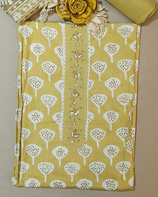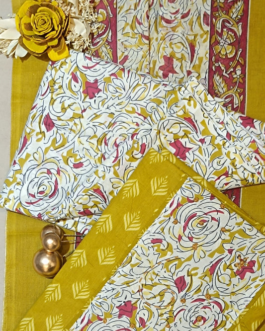 Yellow Mal Cotton printed fabric Unstitched Salwar Suit