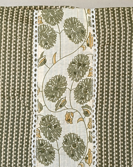Green And White Mal Cotton printed fabric Unstitched Salwar Suit