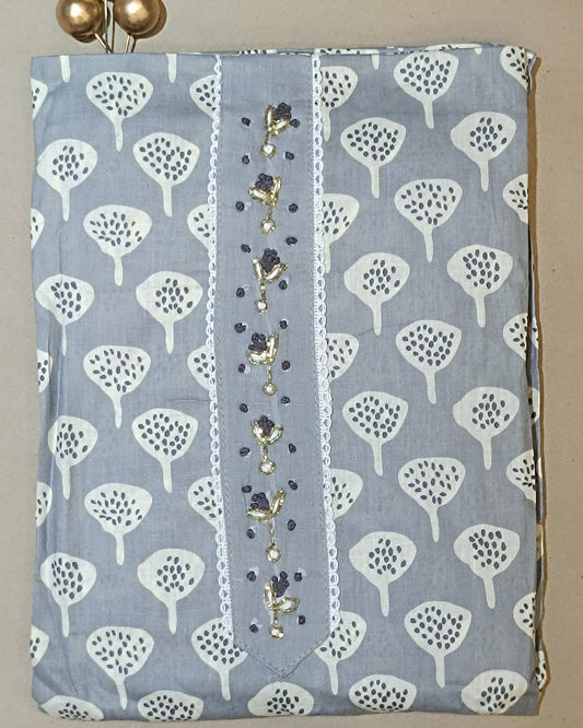 Light grey Mal Cotton printed fabric Unstitched Salwar Suit