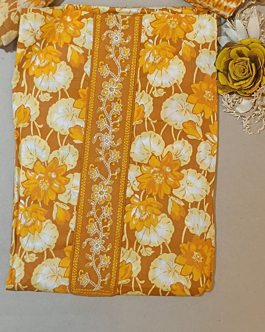 Dark Yellow Mal Cotton printed fabric Unstitched Salwar Suit