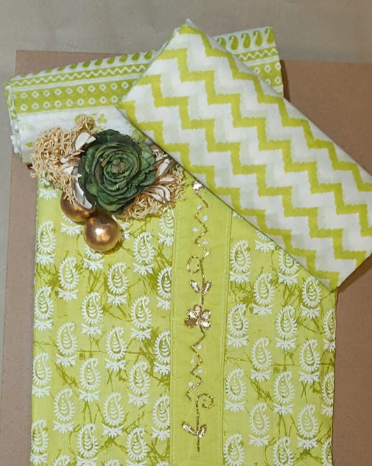 Light Green Mal Cotton printed fabric Unstitched Salwar Suit