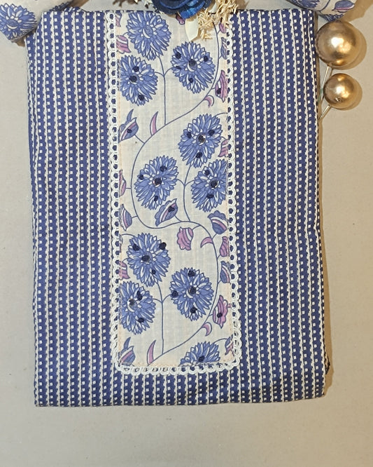 Violet And White Mal Cotton printed fabric Unstitched Salwar Suit