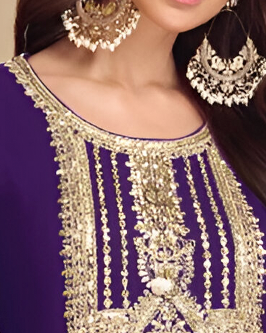 Purple Embroidered Heavy Chinon Readymade Sharara Set