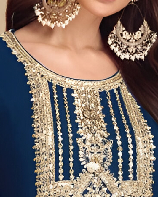 Dark Blue Embroidered Heavy Chinon Readymade Sharara Set