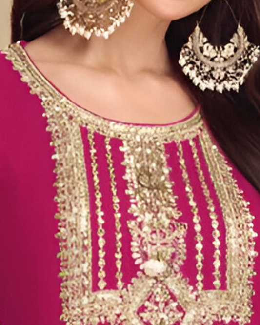 Rani Pink Embroidered Real Chinon Readymade Pakistani Salwar Suit