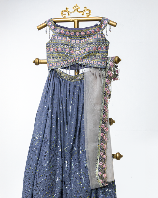 Light Blue Heavy Embroidered Georgette Readymade Lehenga