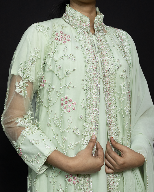 Light Green Emboidery Heavy Chinon Readymade Sharara Set
