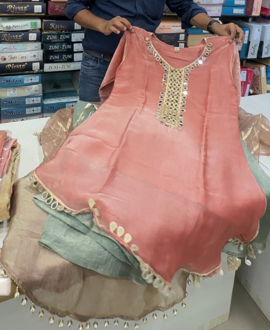 Glass Fabric Mirror work Cordset with dupatta