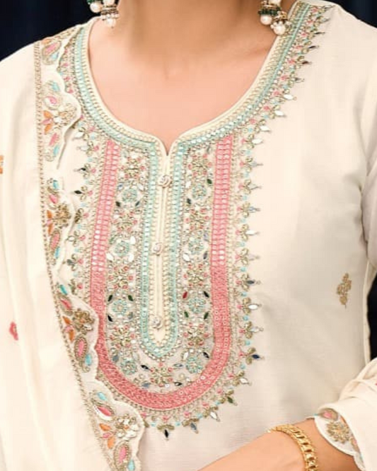 White Embroidered Heavy Chinon Readymade Sharara Set