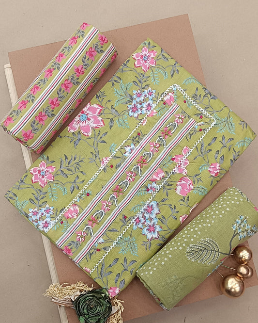 Dark Green Mal Cotton printed fabric Unstitched Salwar Suit